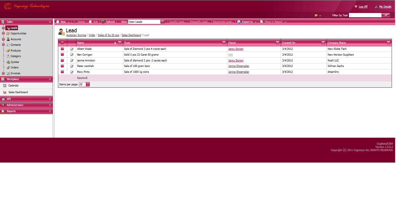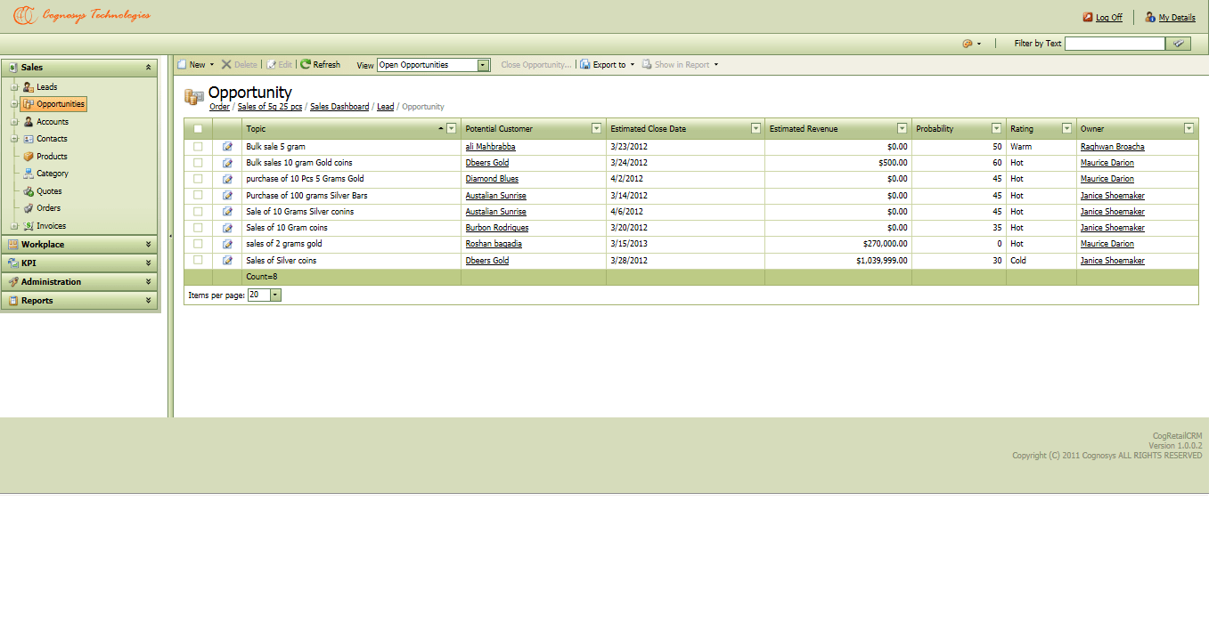 Cognosys CRM is designed for Managers who do not have to spend months trying to learn how to operate a CRM solution. with Built-in KPI, Business Intelligence- Dashboards and drill down Reports,Cog CRM is planned for directed usage.